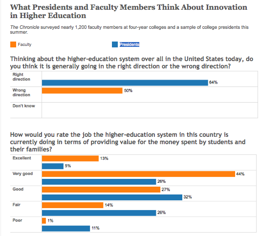 Over all, faculty members and presidents said that, when it comes to innovative practices, too much attention was given to technology and cost-cutting and not enough to improving teaching and learning.