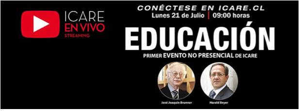 Conversación sobre educación y su reforma entre Harald Beyer y José Joaquin Brunner, moderada por Soledad Teixedó, la cual tuvo lugar en ICARE, Santiago de Chile, 21 de julio.